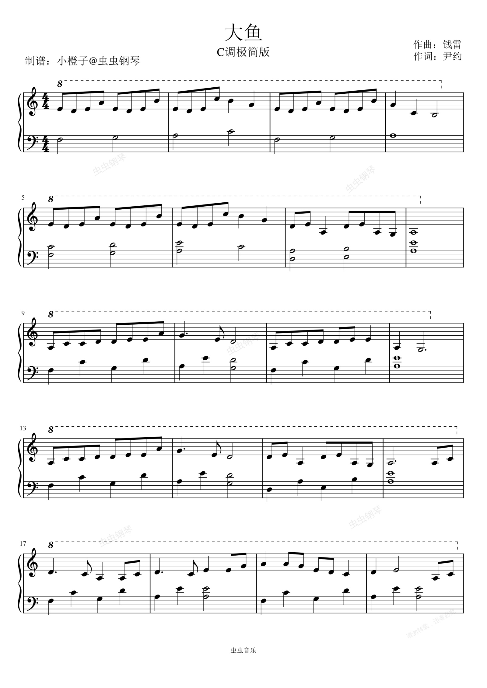 钢琴谱:⟪大鱼⟫C调极简版+小汤3难度