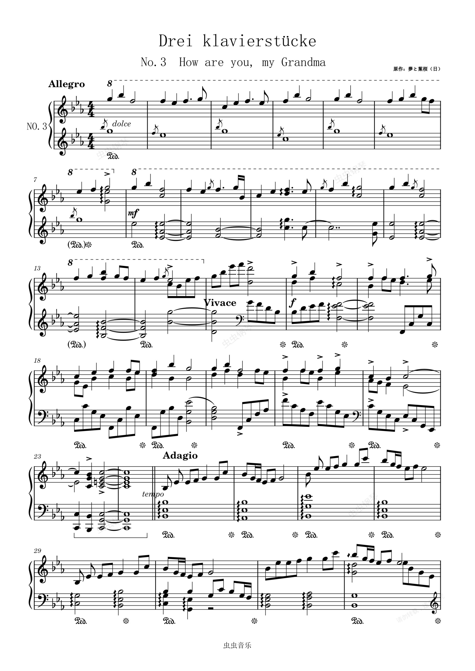 钢琴谱:三首钢琴小品:《外婆桥》钢琴独奏版(原《梦和叶樱》)