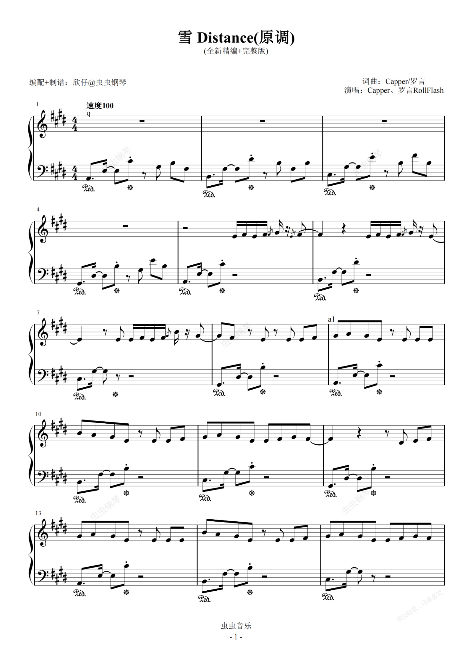 钢琴谱:#c-《雪 Distance》(Capper、罗言RollFlash、完整版)