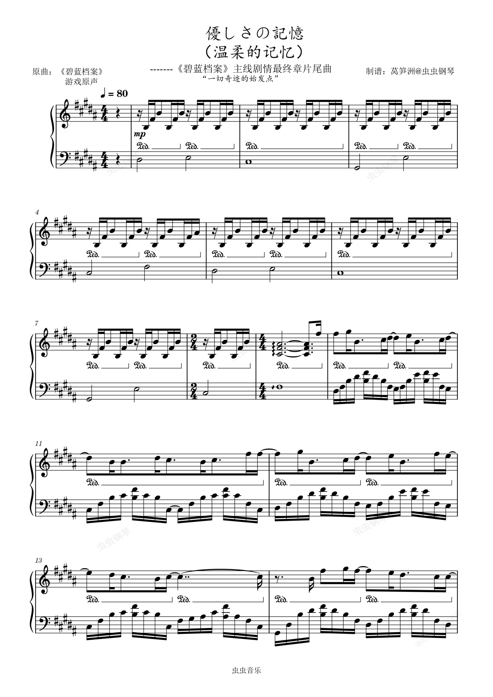 钢琴谱:優しさの記憶(碧蓝档案主线剧情最终章片尾曲)