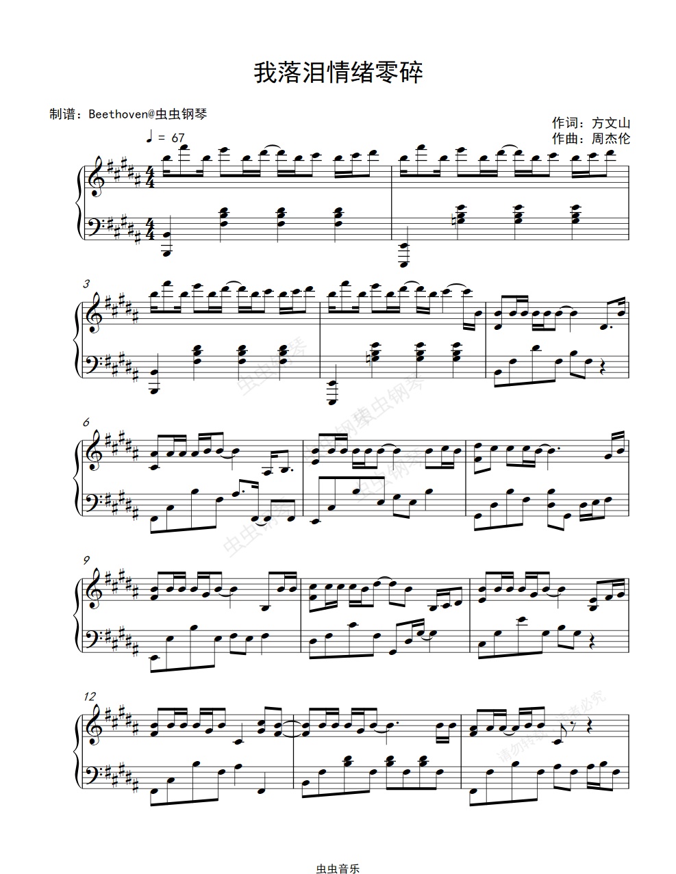 钢琴谱:我落泪情绪零碎-精编钢琴独奏-周杰伦