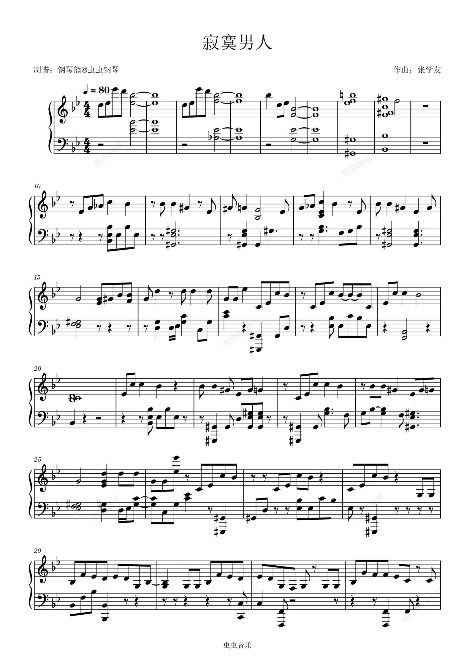 钢琴谱:寂寞的男人