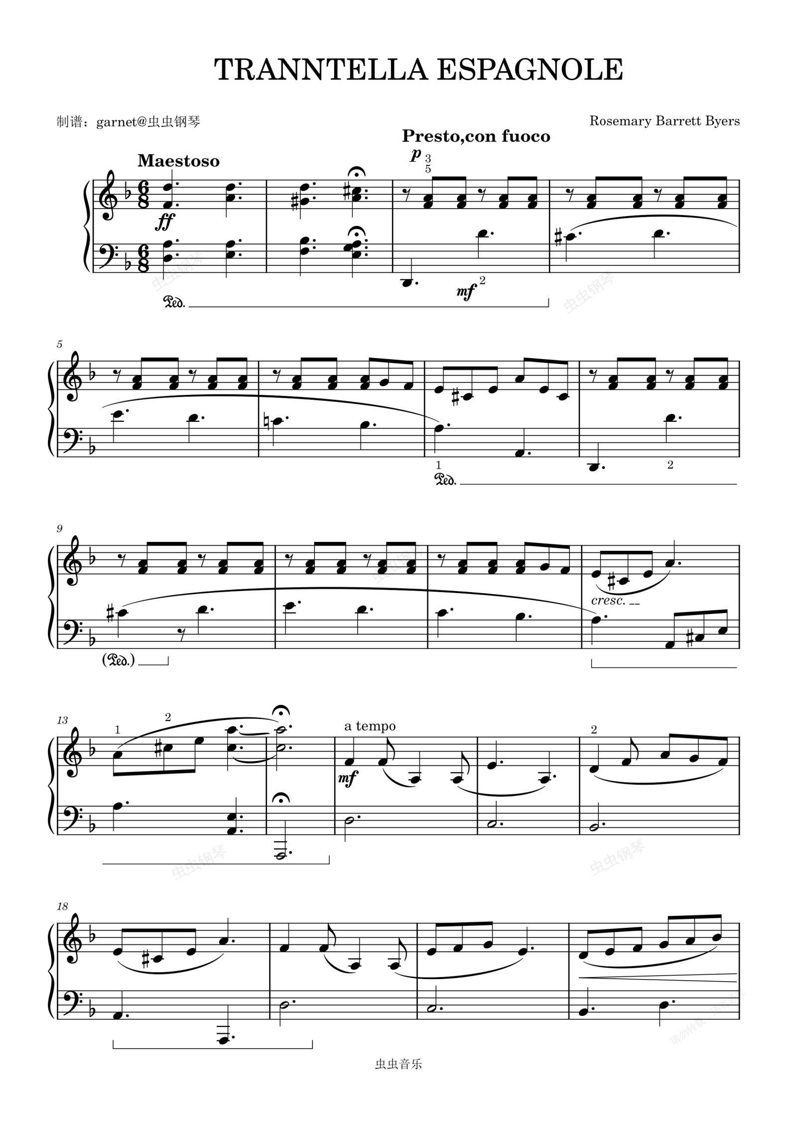 钢琴谱:西班牙塔兰泰拉(拜尔斯)