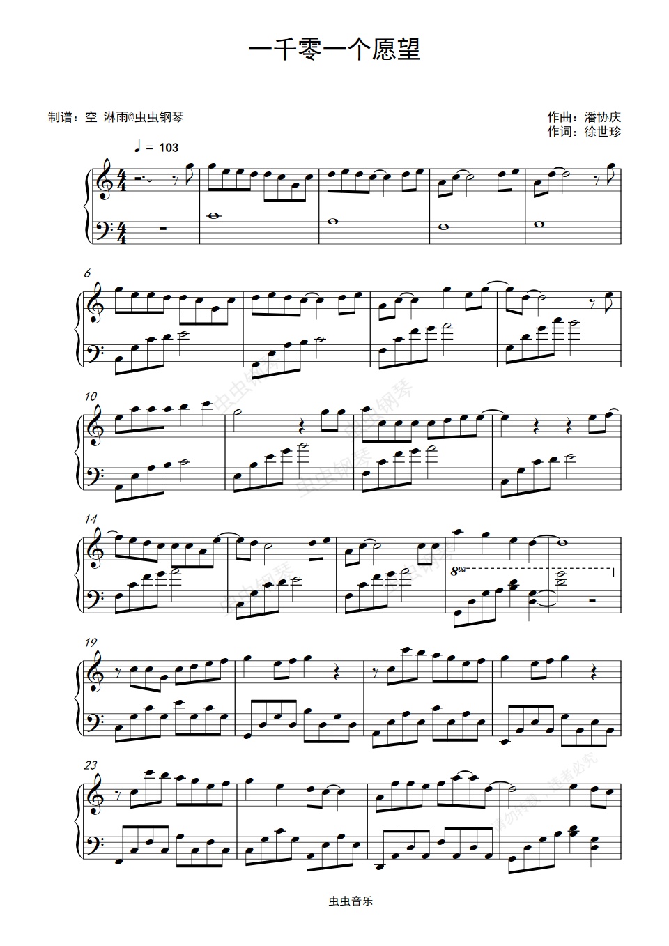 钢琴谱:一千零一个愿望