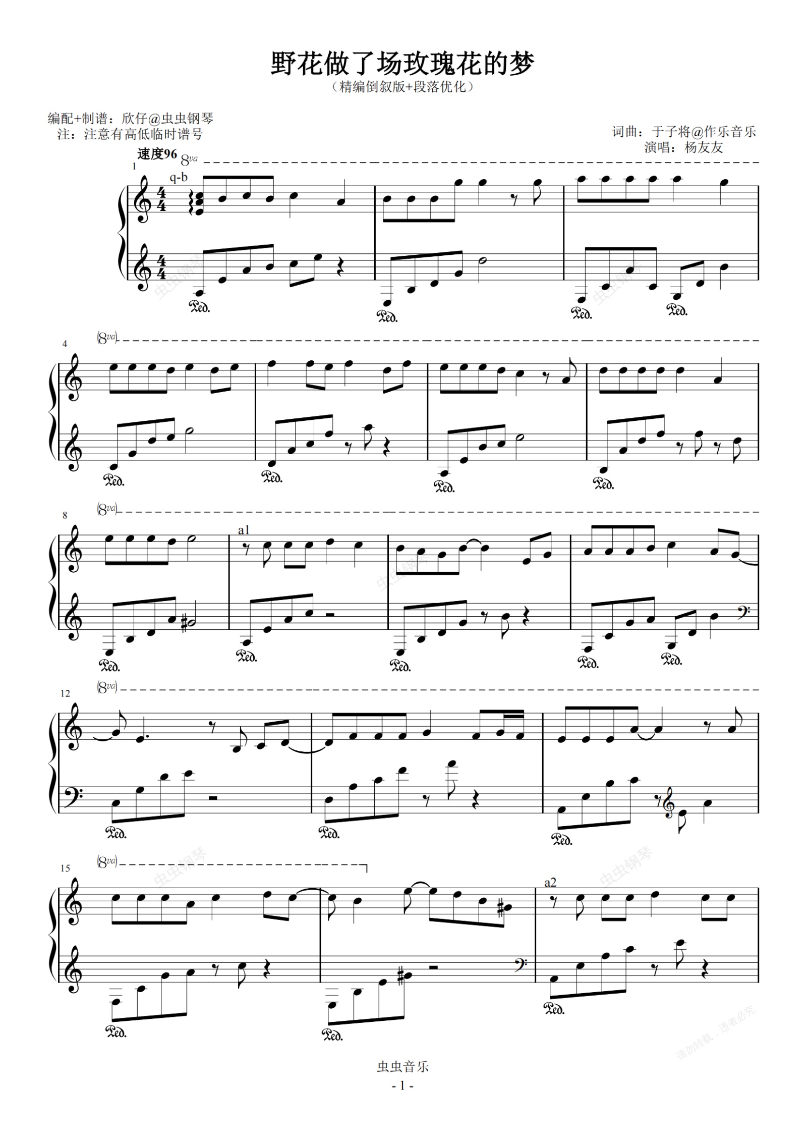 钢琴谱:杨友友-a《野花做了场玫瑰花的梦》(精编倒叙版+段落优化)