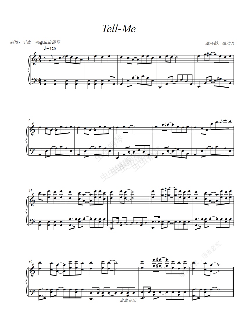 钢琴谱:《Tell Me》潘玮柏/徐洁儿,
