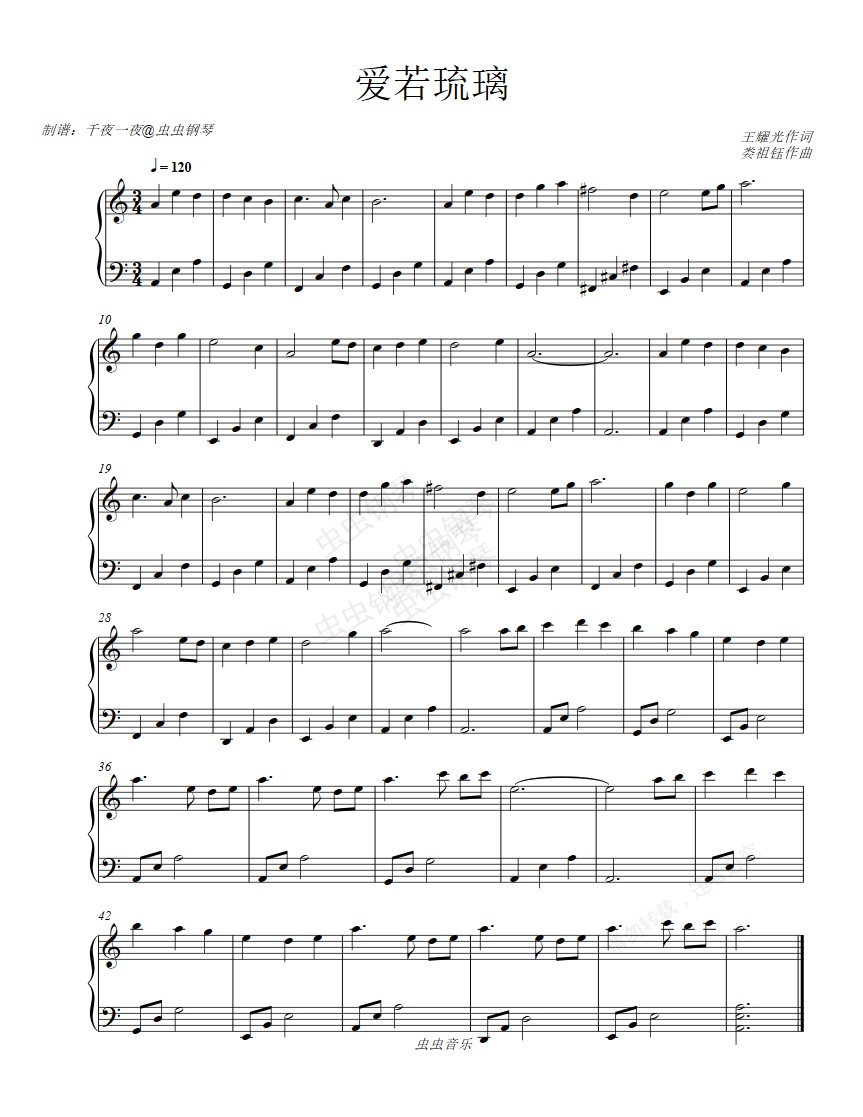 钢琴谱:钢琴】爱若琉璃(电视剧《琉璃》插曲 )
