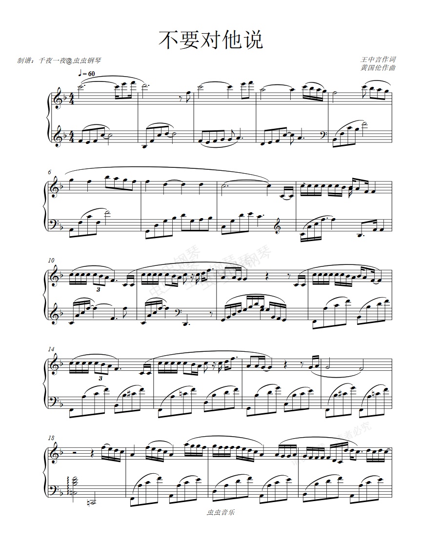 钢琴谱:张信哲《不要对他说》不要对他说出一样的话