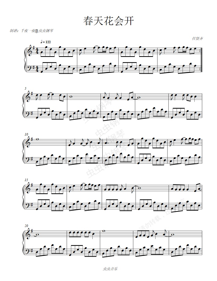 钢琴谱:任贤齐《春天花会开》总是假装不经意,经过你家大门外