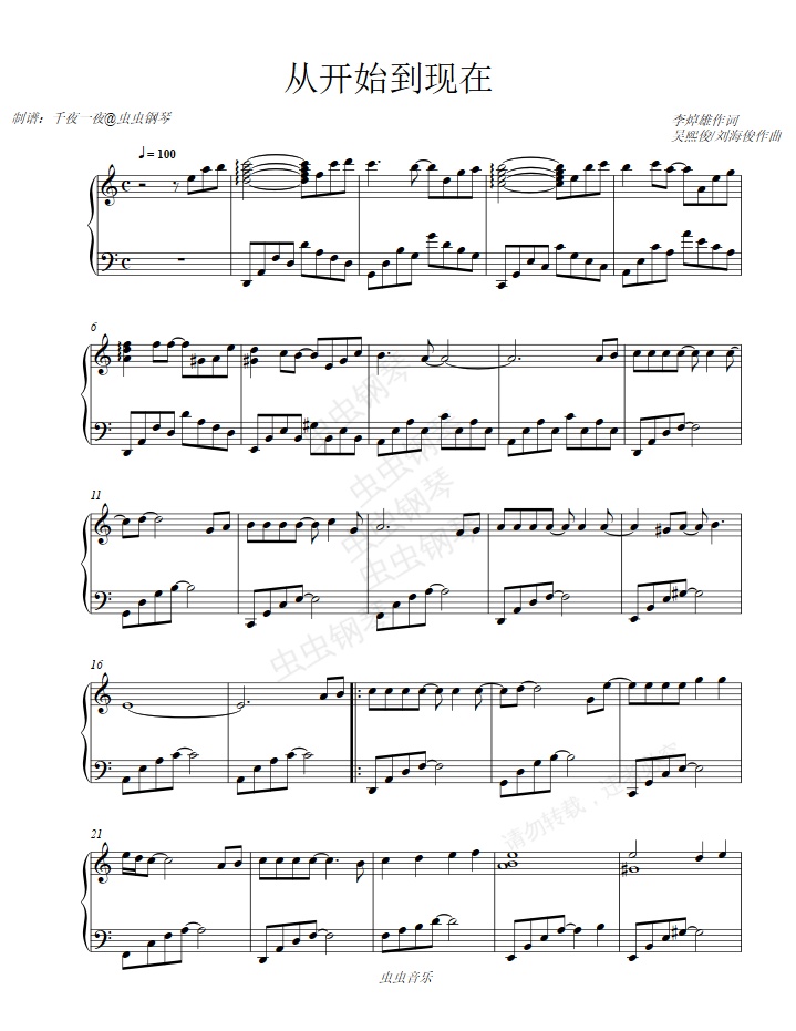 钢琴谱:张信哲《从开始到现在》,声声催泪!