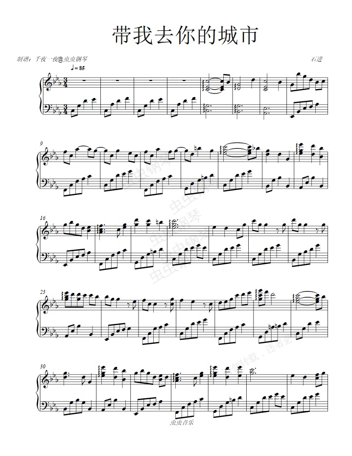 钢琴谱:石进《夜的钢琴曲·带我去你的城市》丨爱上好钢琴