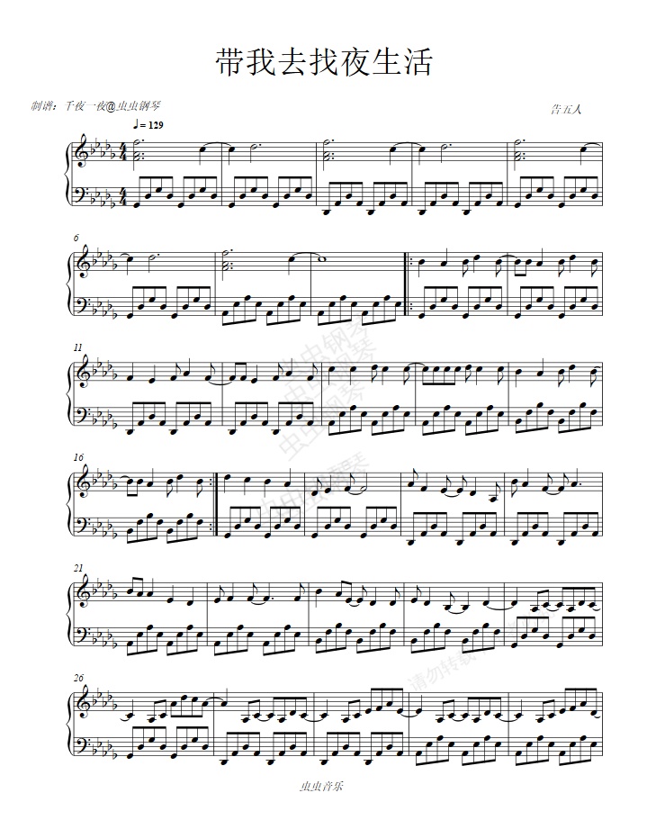 钢琴谱:告五人《带我去找夜生活》人生若只如初见 更像爱人错过的曲子