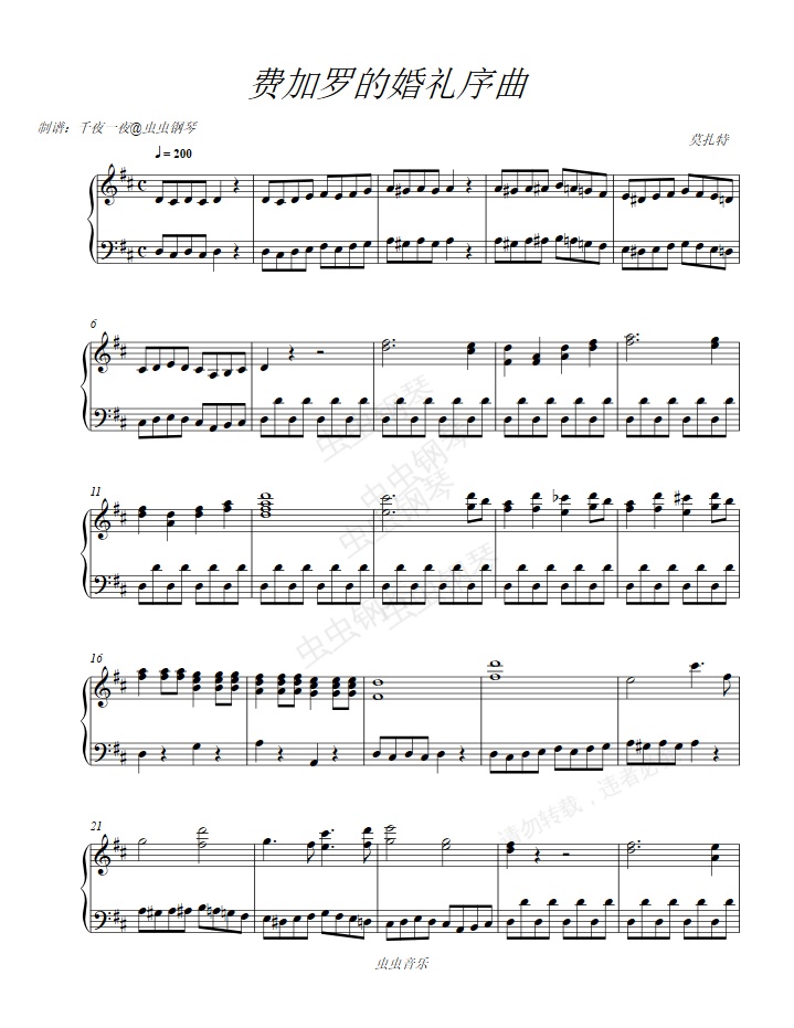 钢琴谱:莫扎特《费加罗的婚礼》 序曲 Mozart - Le nozze di Figaro