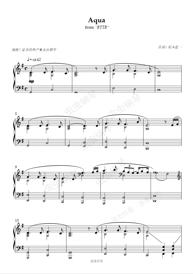 钢琴谱:坂本龙一 - Aqua - 原版复刻