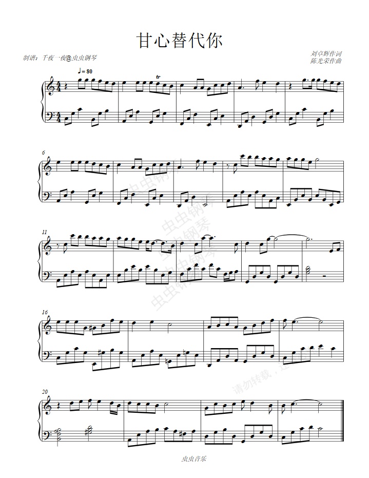 钢琴谱:【毛不易】《甘心替代你》(电影《中国医生》插曲)