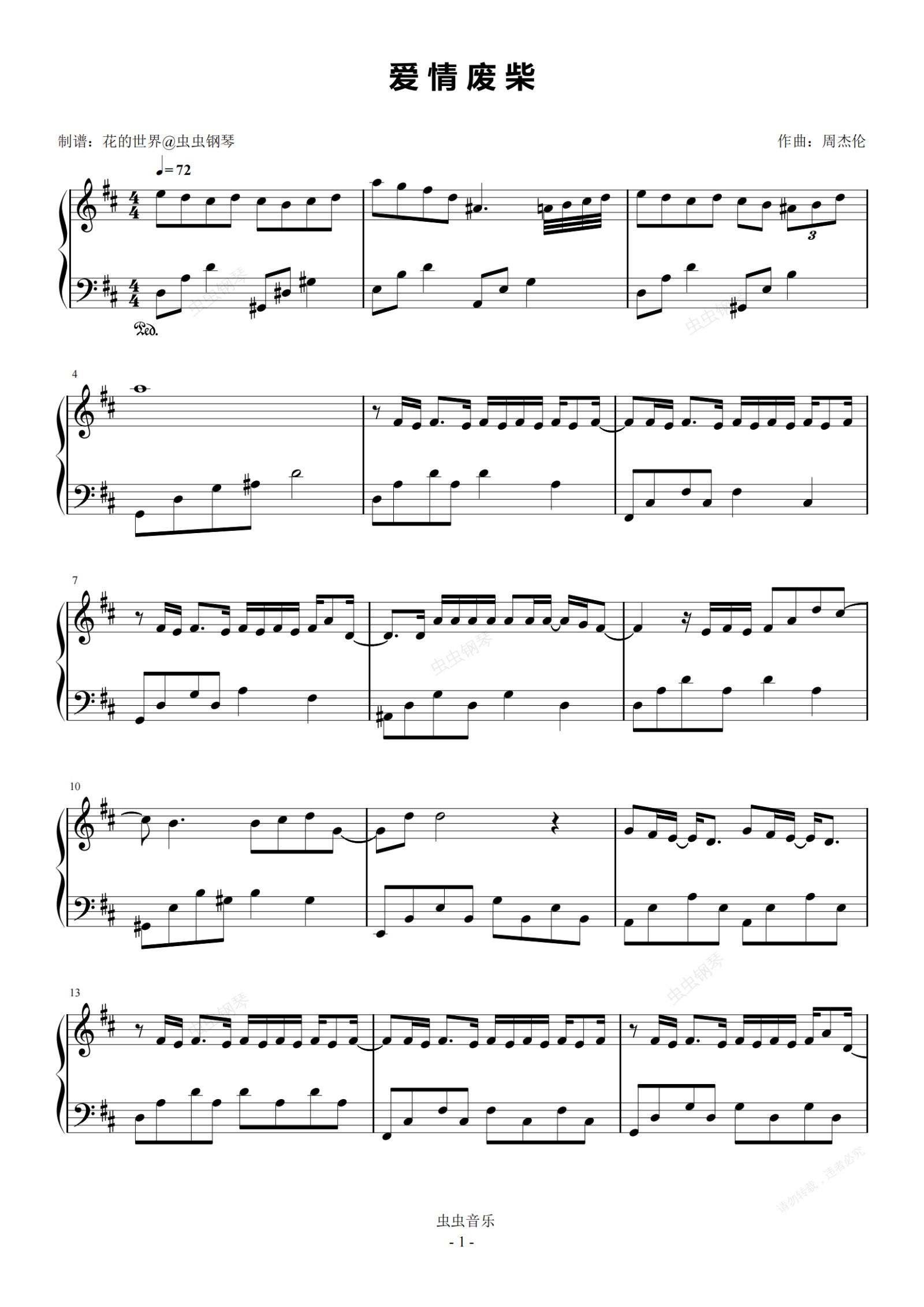 钢琴谱:爱情废柴 原调简易版 周杰伦