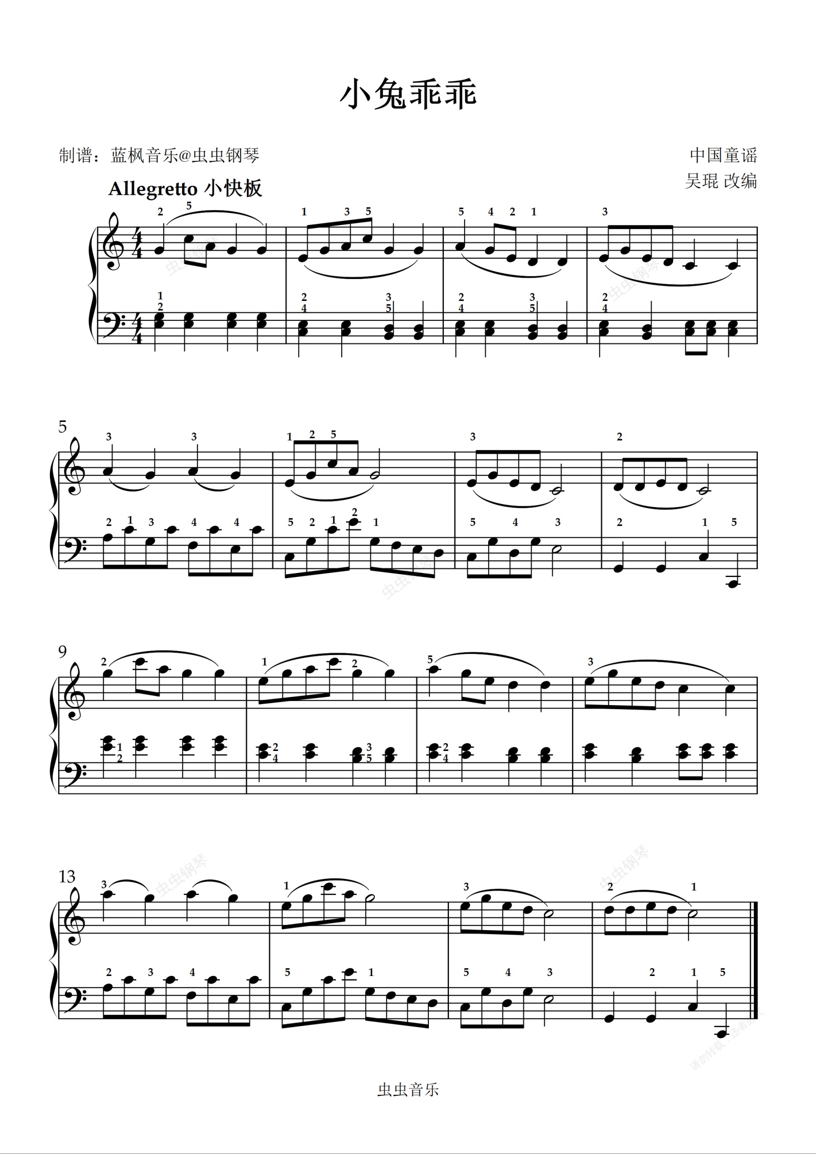 钢琴谱:小兔乖乖