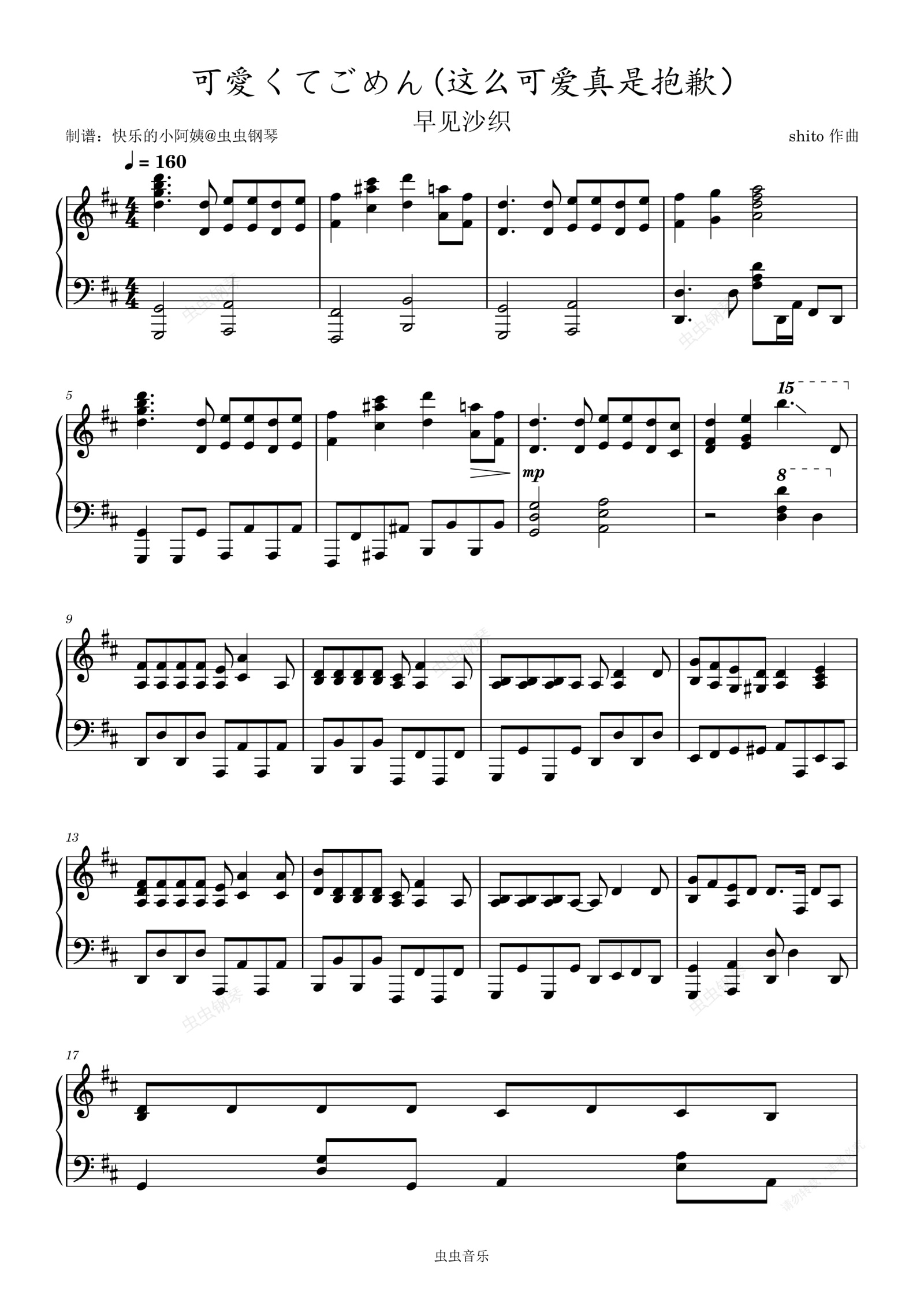 钢琴谱:可愛くてごめん(这么可爱真是抱歉)早见沙织