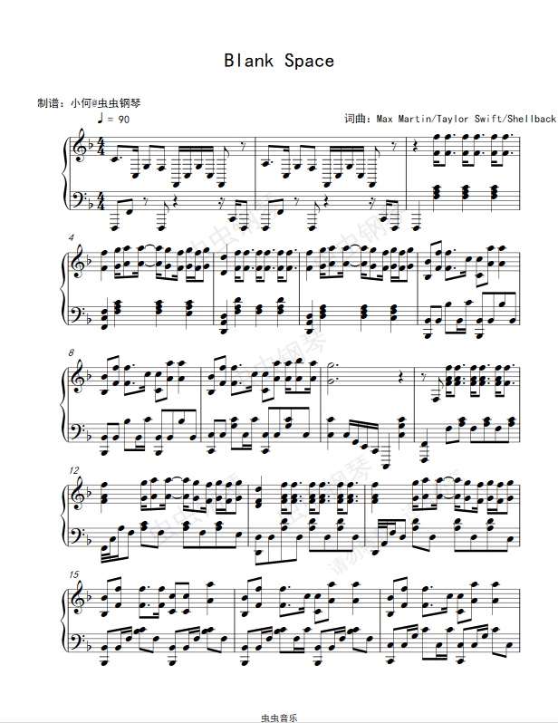 钢琴谱:Blank Space-好听版-Taylor Swift
