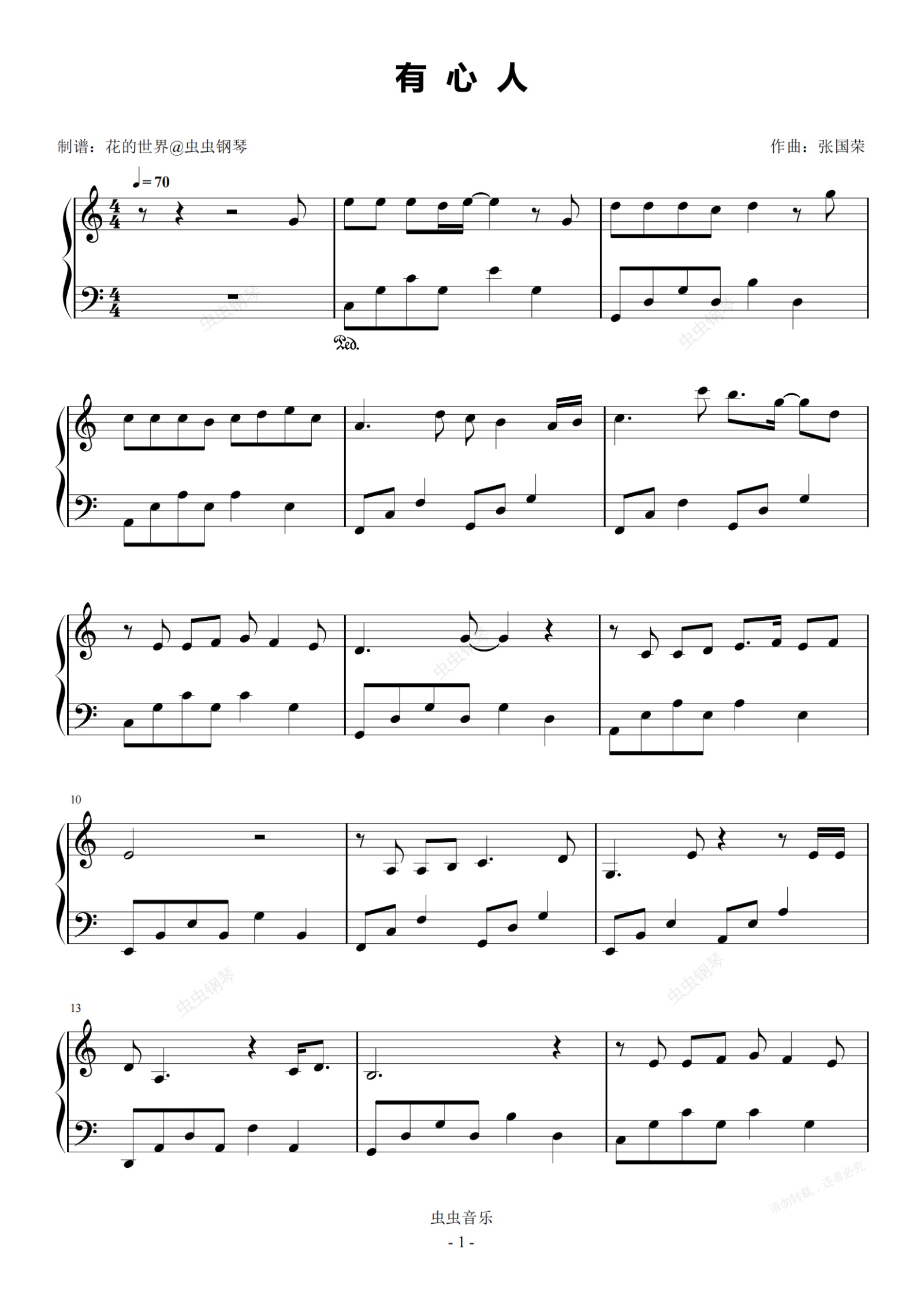钢琴谱:有心人 C调简易版 张国荣 流行经典