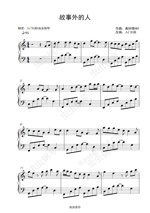 钢琴谱:慕寒《故事外的人》入门C调简单抒情版