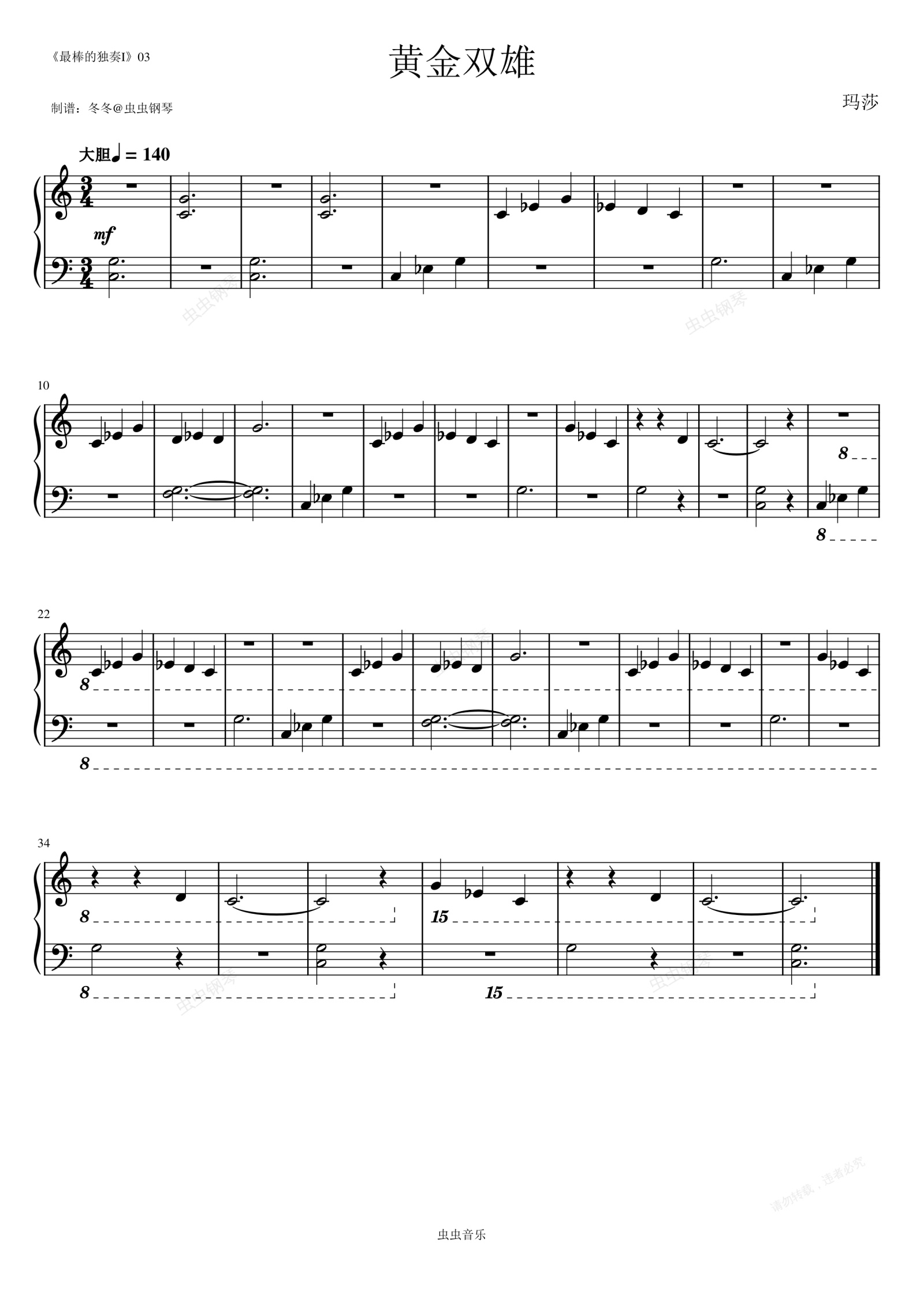 钢琴谱:黄金双雄