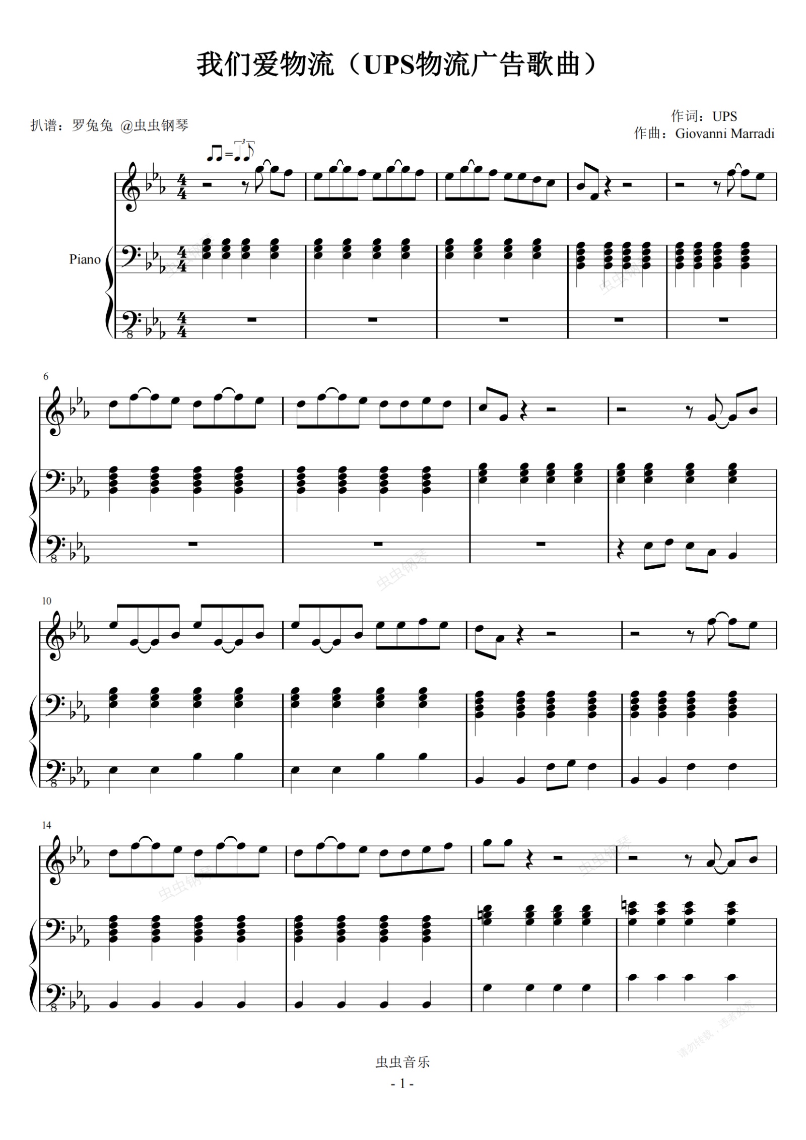 钢琴谱:我们爱物流(UPS物流广告歌曲)