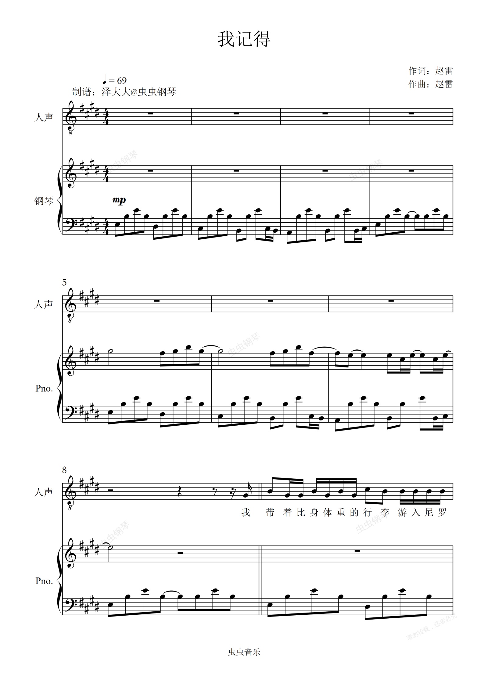 钢琴谱:我记得【原版弹唱附词】泽大大 赵雷