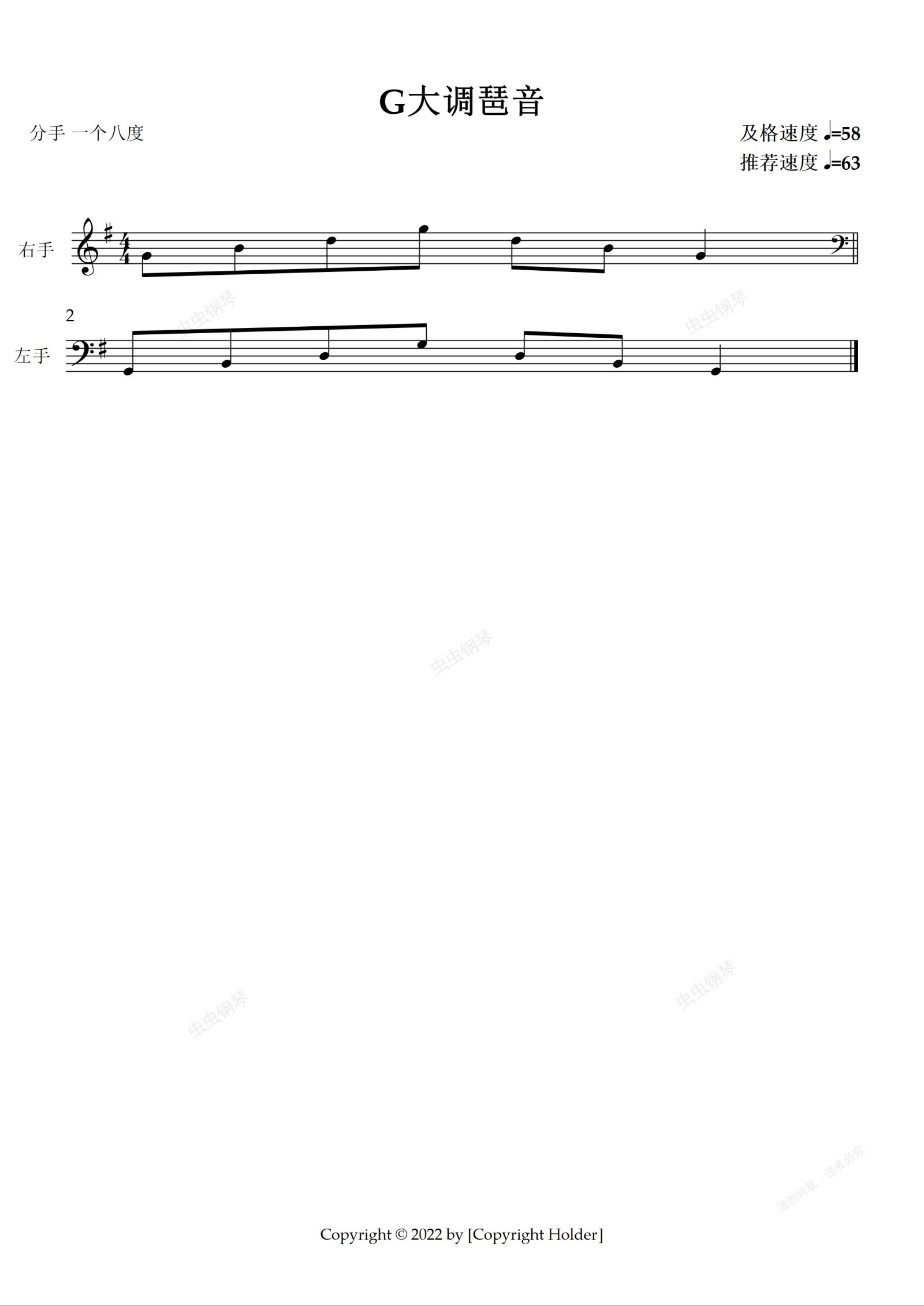 钢琴谱:G大调琶音 (分手 一个八度)