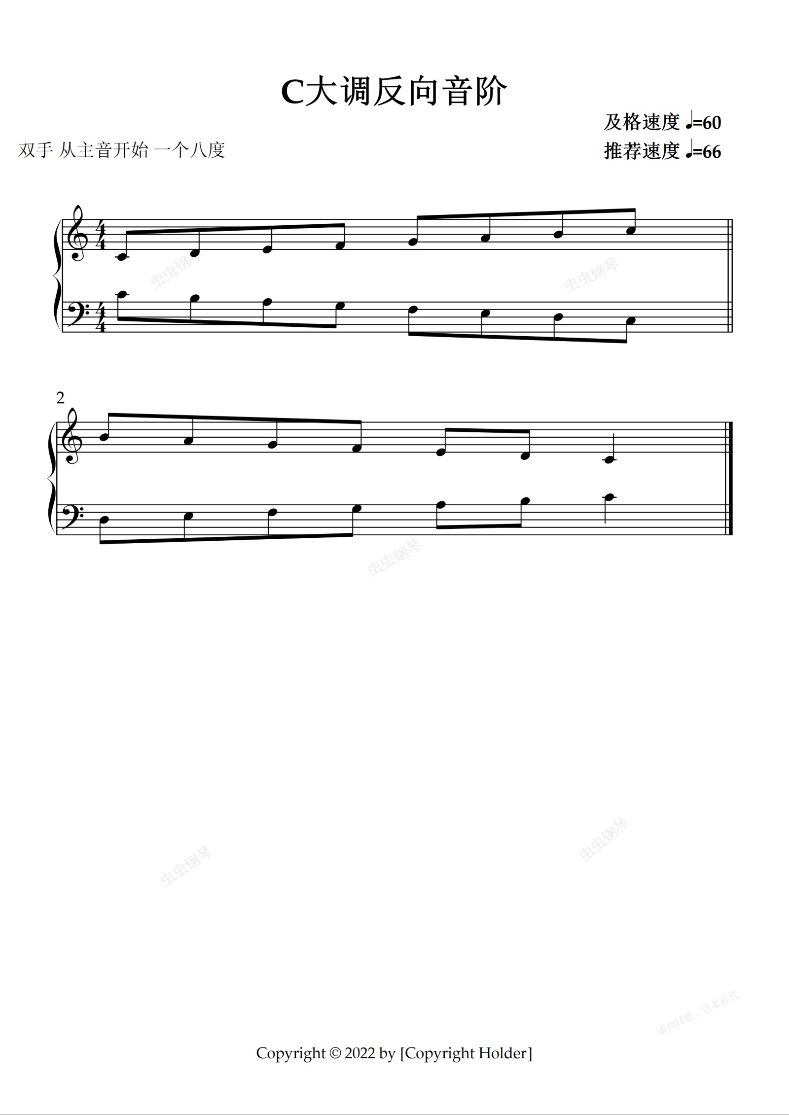 钢琴谱:C大调反向音阶 (双手 从主音开始 一个八度)