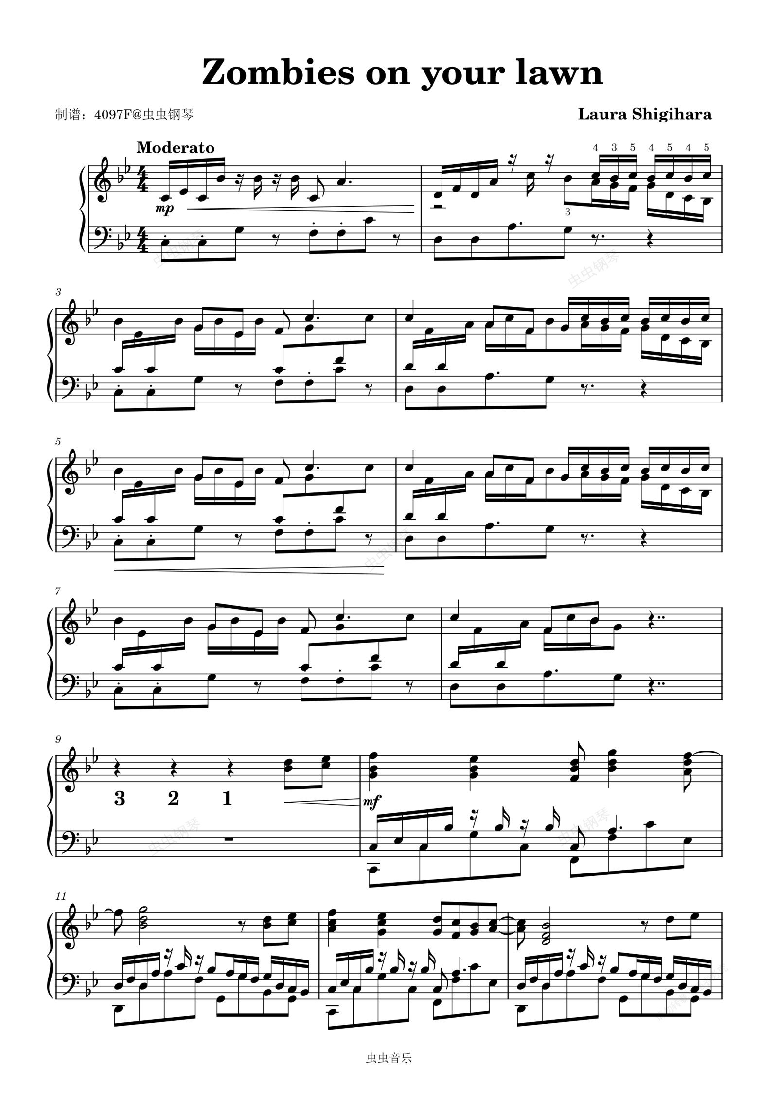 钢琴谱:植物大战僵尸主题曲 Zombies on your lawn 独奏版