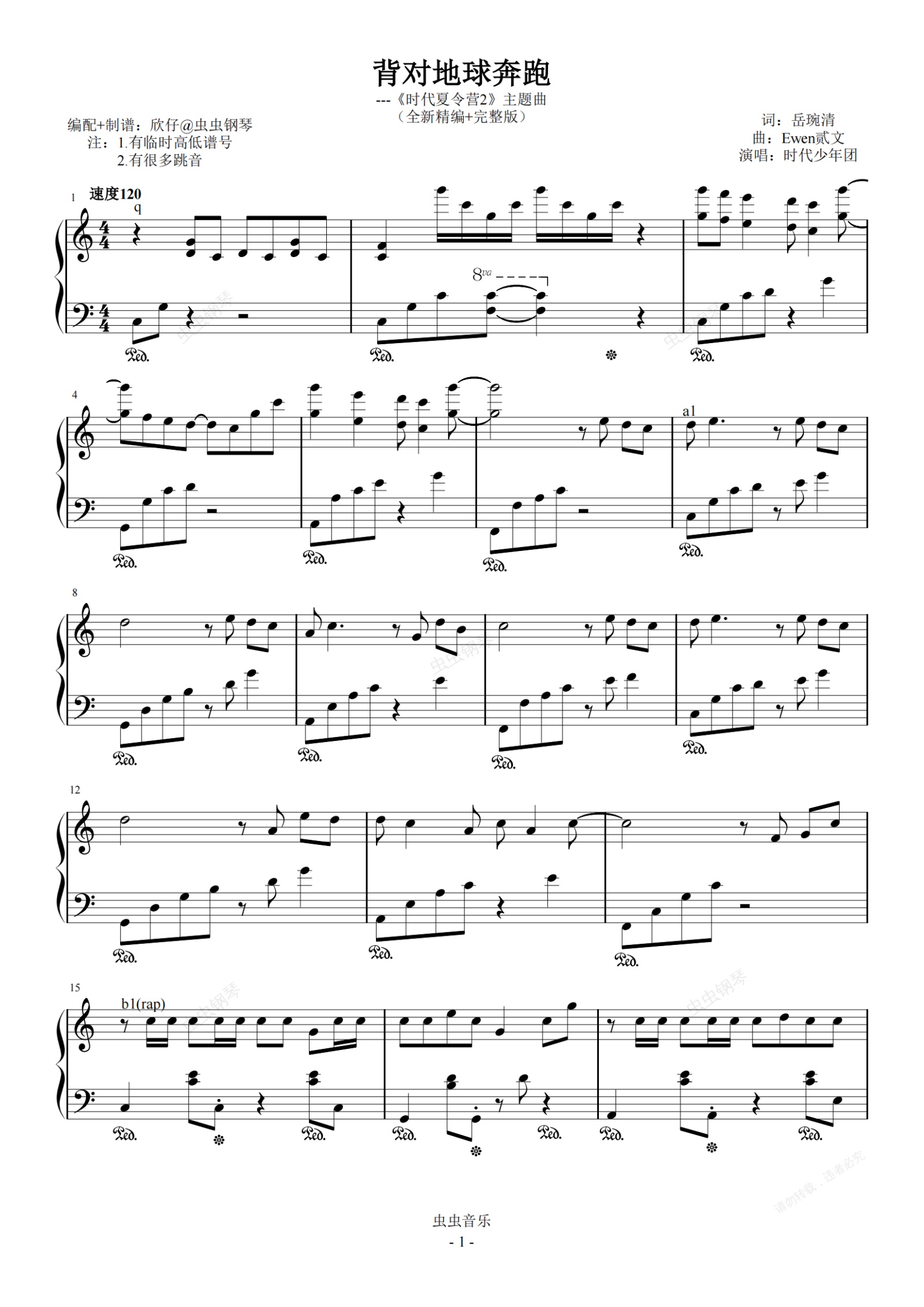 钢琴谱:时代少年团-C《背对地球奔跑》(全新精编+完整版)