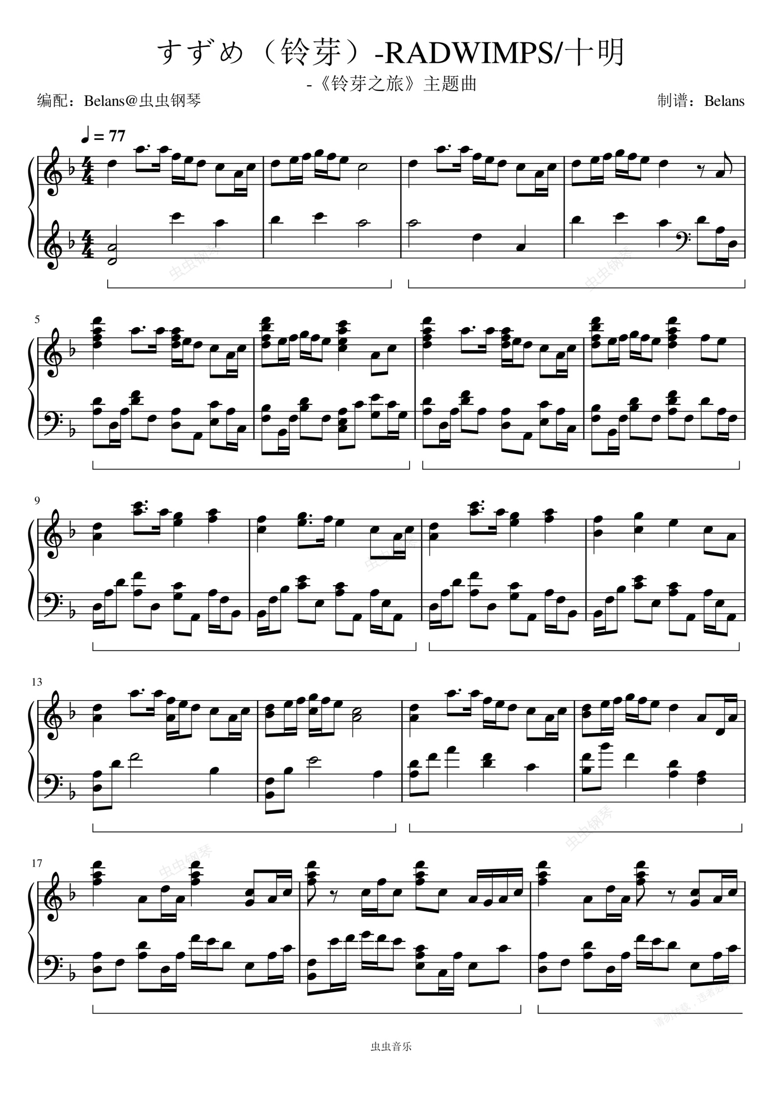 钢琴谱:すずめ(铃芽)-RADWIMPS、十明   电影《铃芽之旅》主题曲