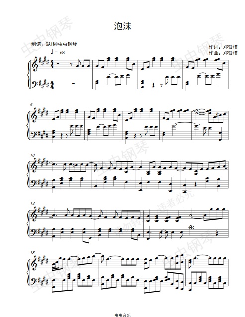 钢琴谱:泡沫-还原好听版-邓紫棋