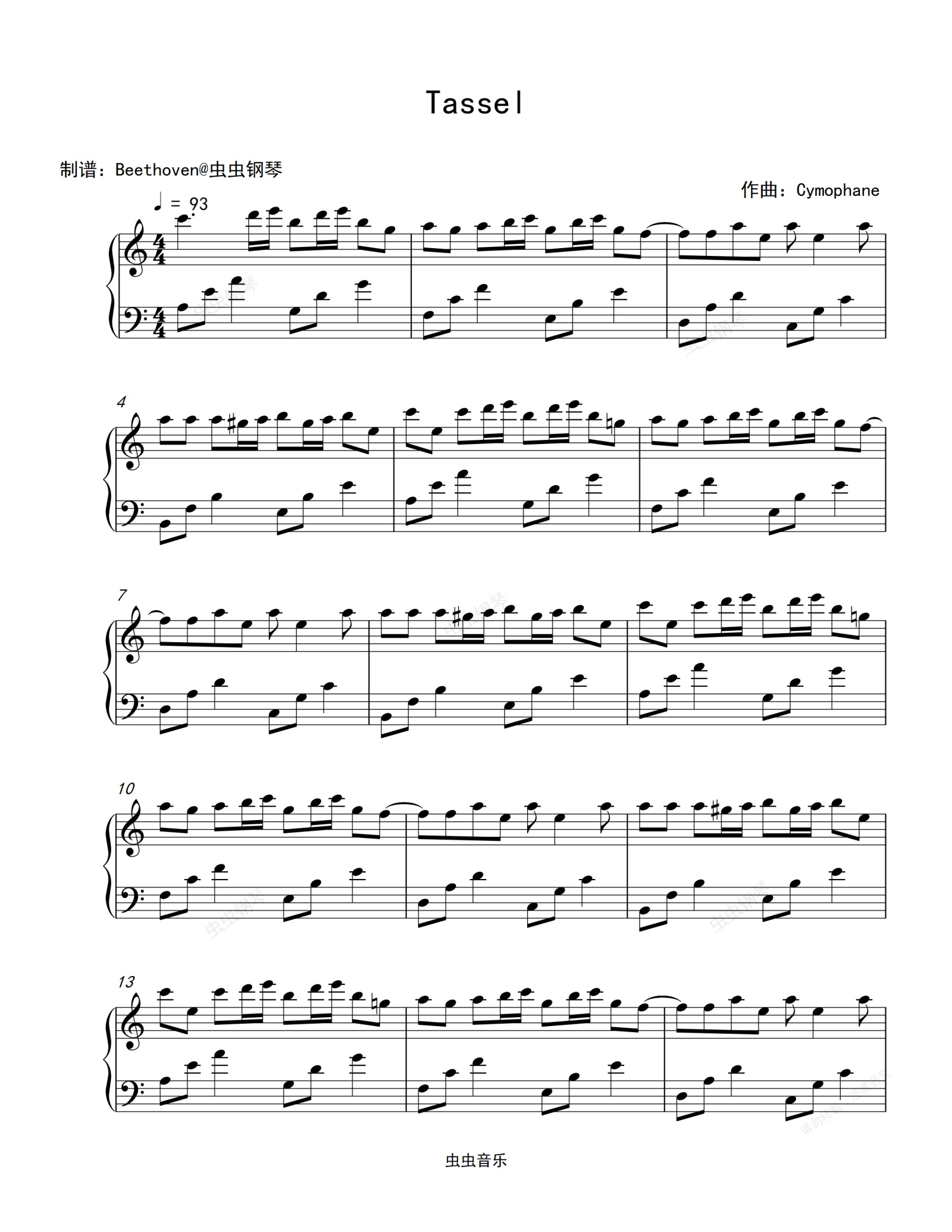 钢琴谱:Tassel-Cymophane