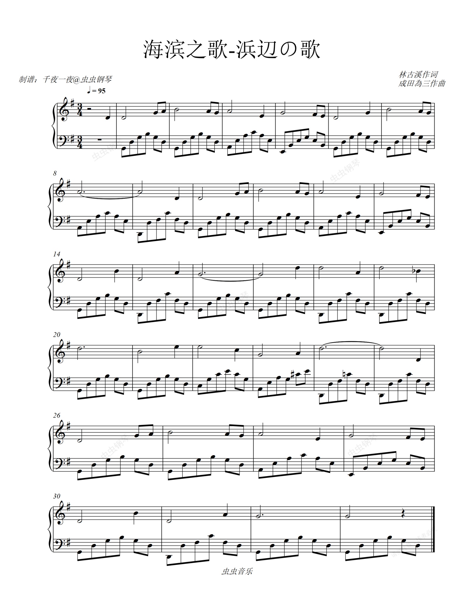 钢琴谱:【日本名曲】浜辺の歌(海滨之歌)钢琴弹奏版