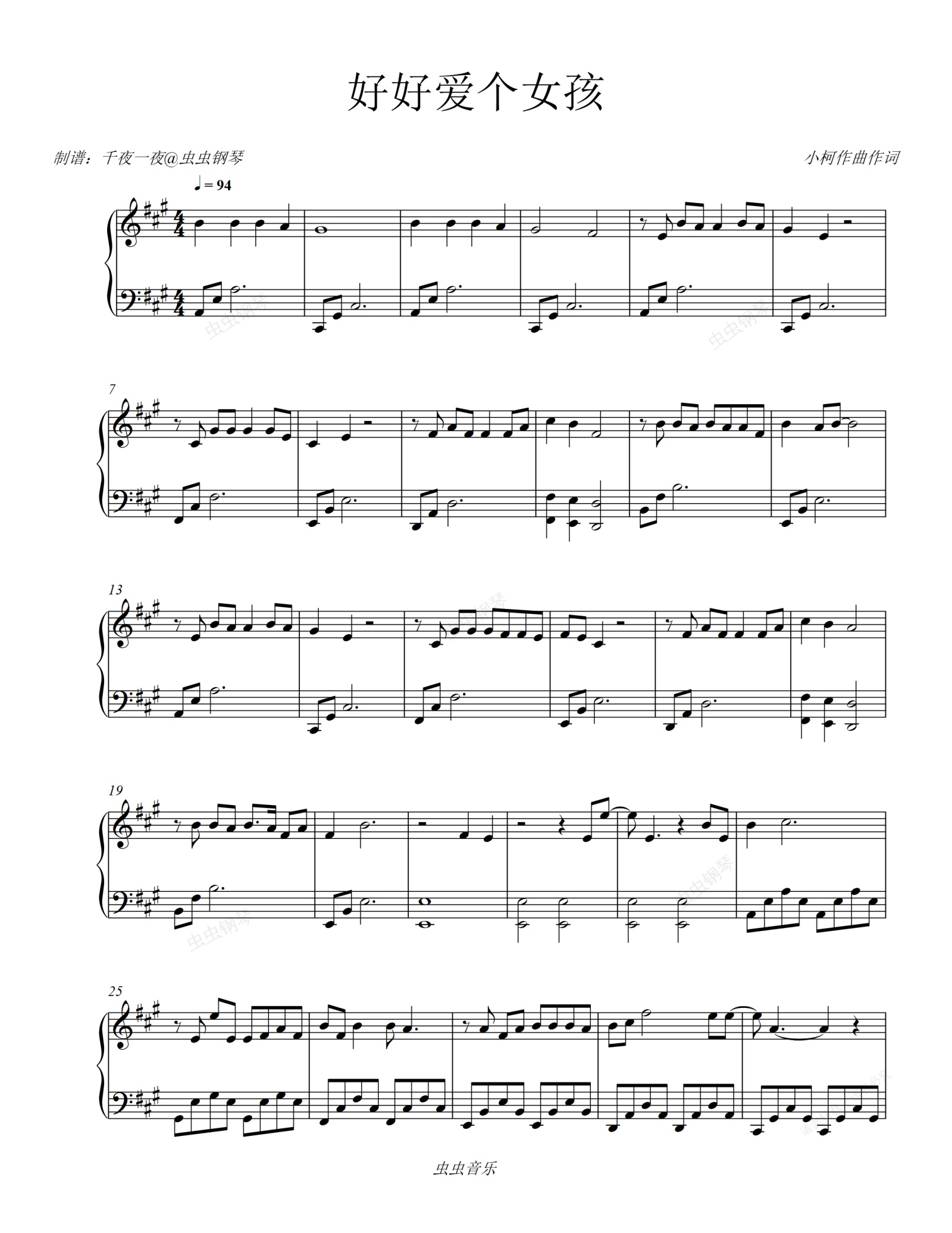钢琴谱:张信哲 Jeff Chang [ 好好愛個女孩 ]