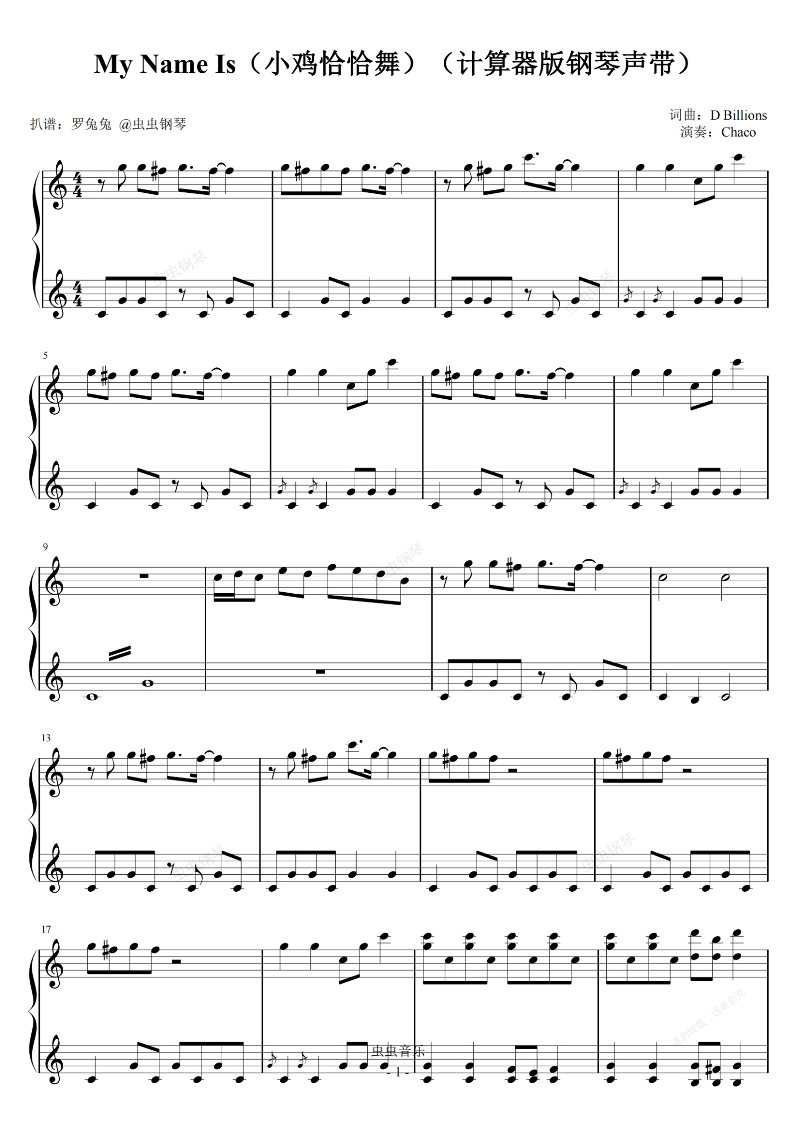 钢琴谱:My Name Is(小鸡恰恰舞)(计算器版钢琴声带)