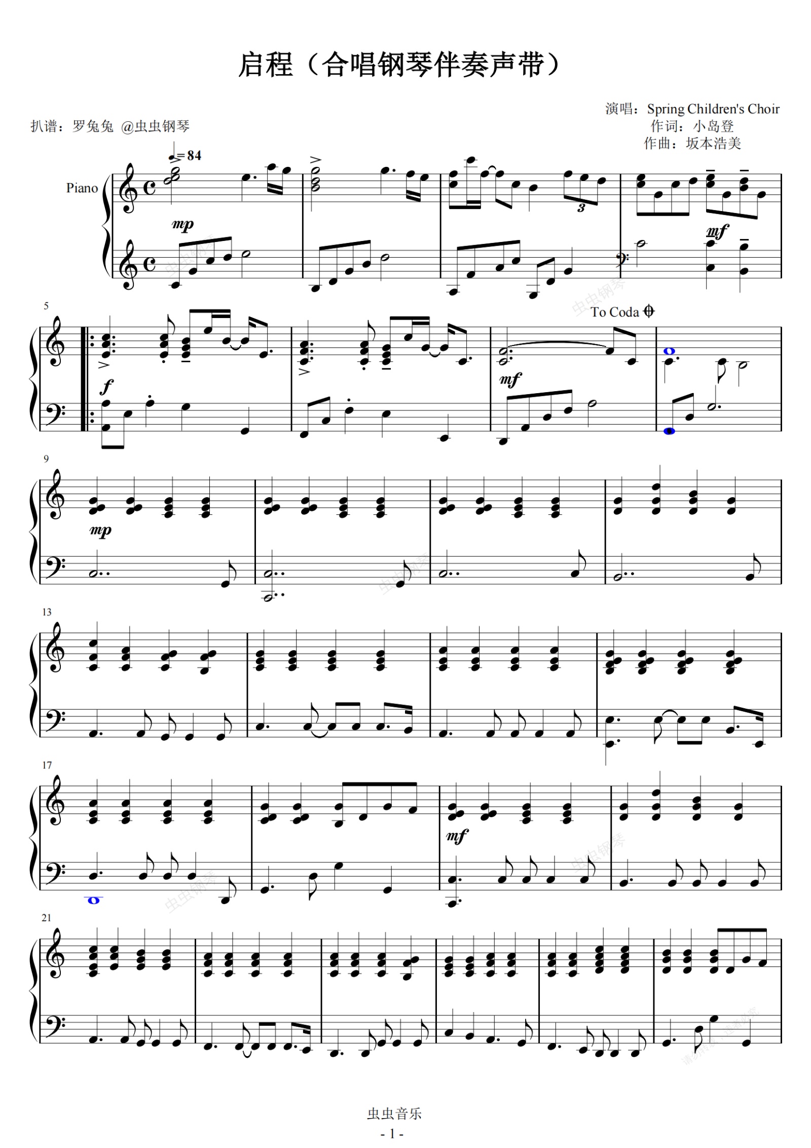 钢琴谱:启程(合唱钢琴伴奏声带)