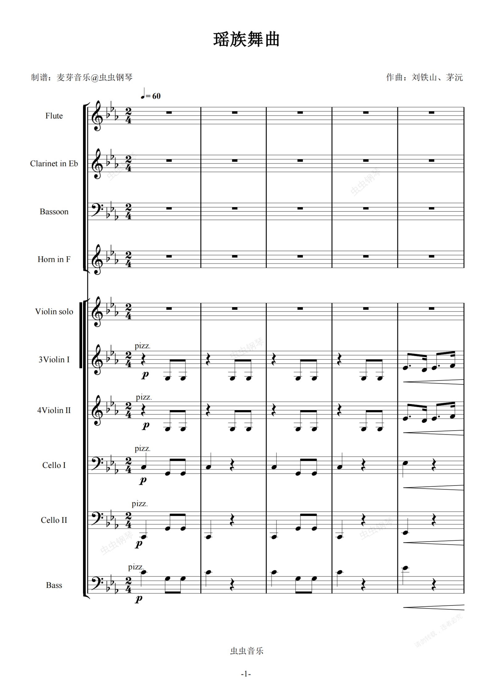 钢琴谱:瑶族舞曲 总谱 室内乐管弦乐