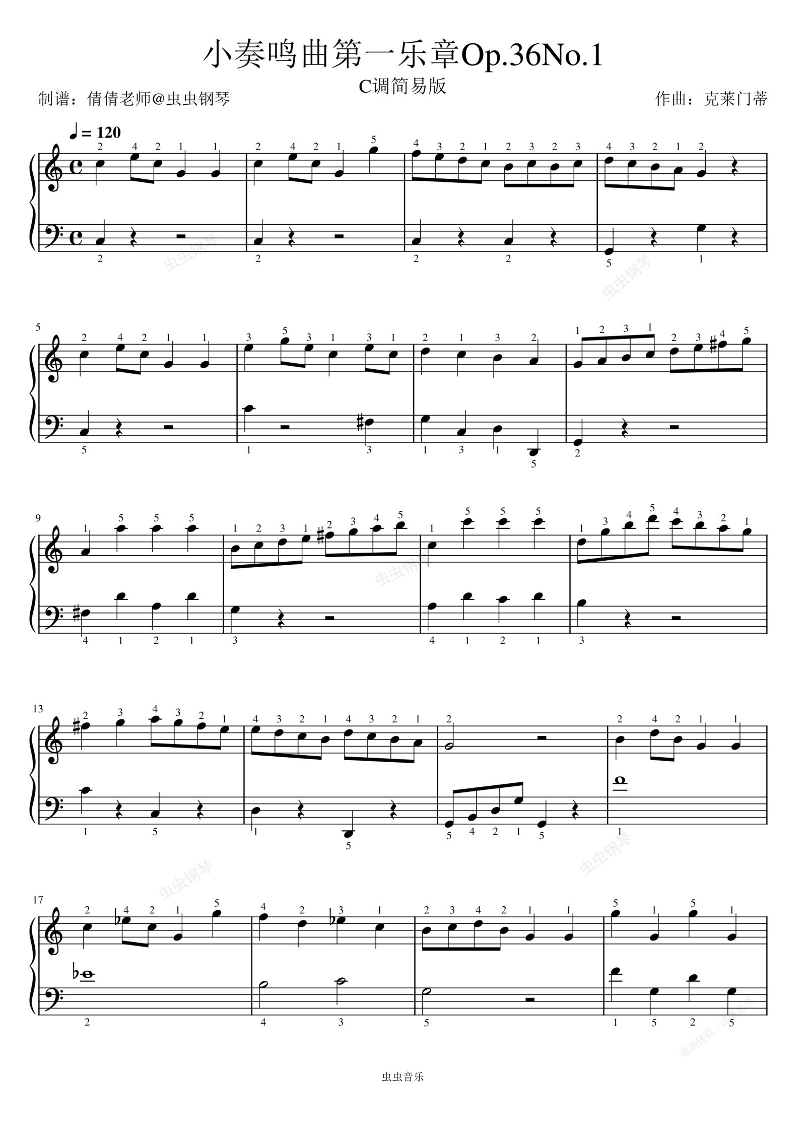 钢琴谱:小奏鸣曲第一乐章-C调简易版-克莱门蒂