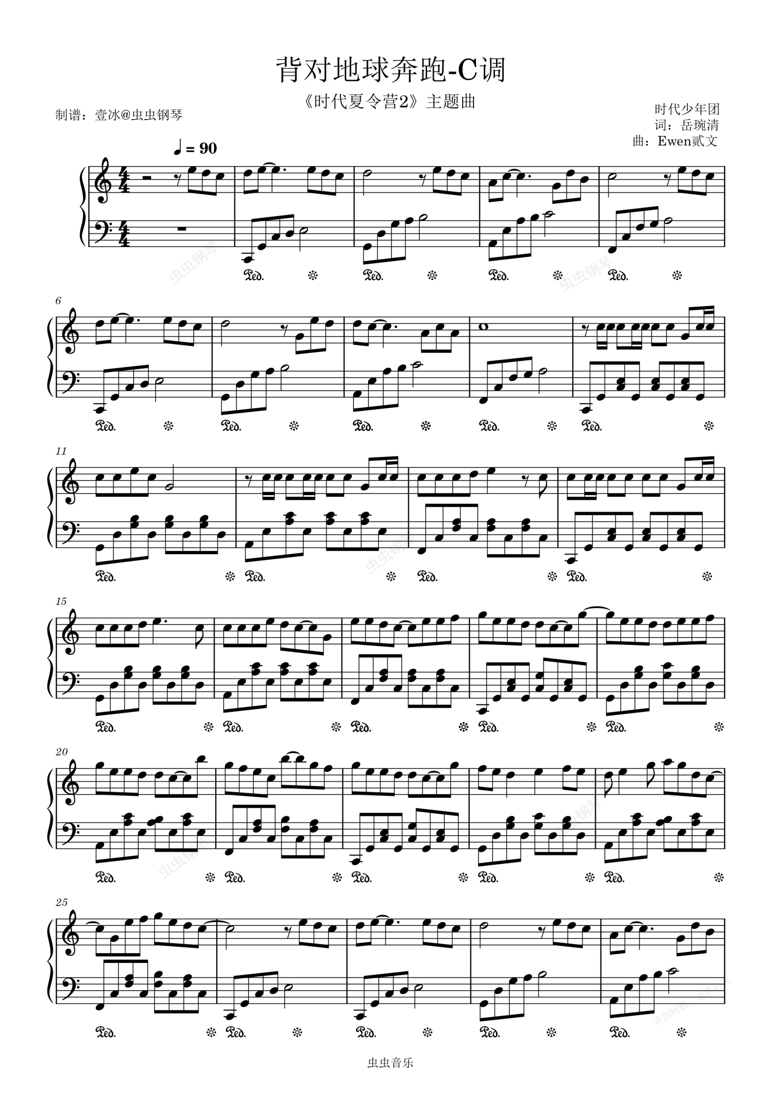钢琴谱:背对地球奔跑//《时代夏令营2》主题曲-C调