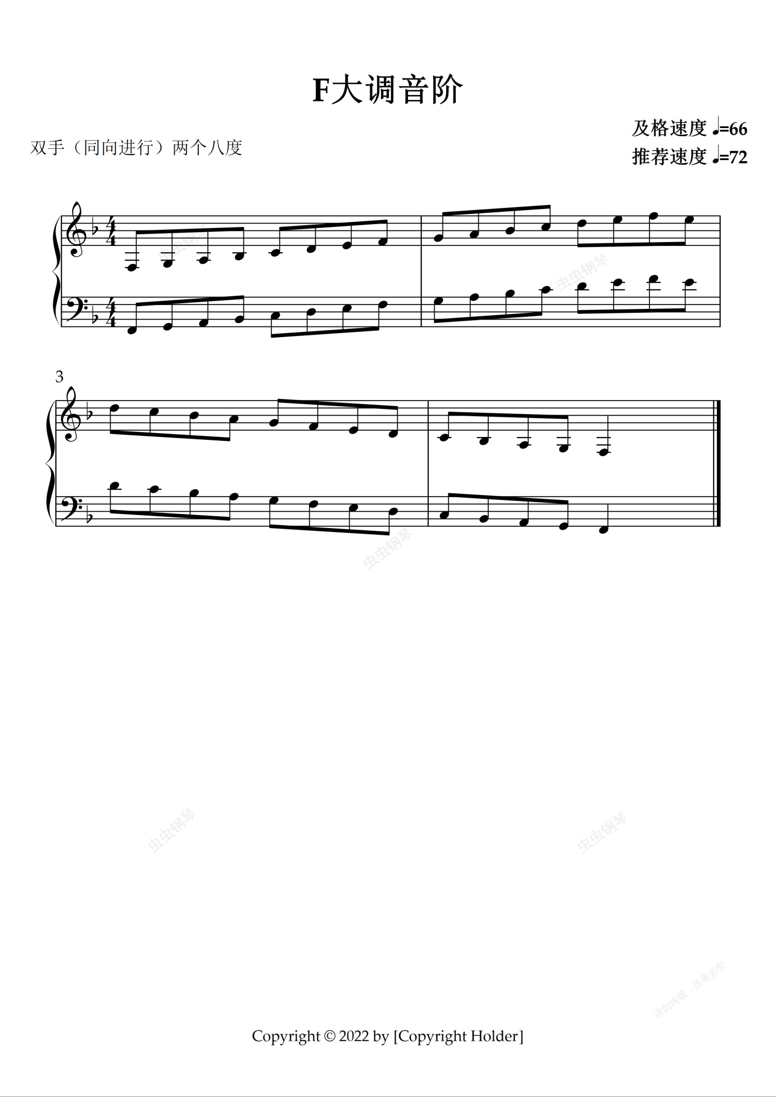 钢琴谱:F大调音阶 (双手 同向进行 两个八度)