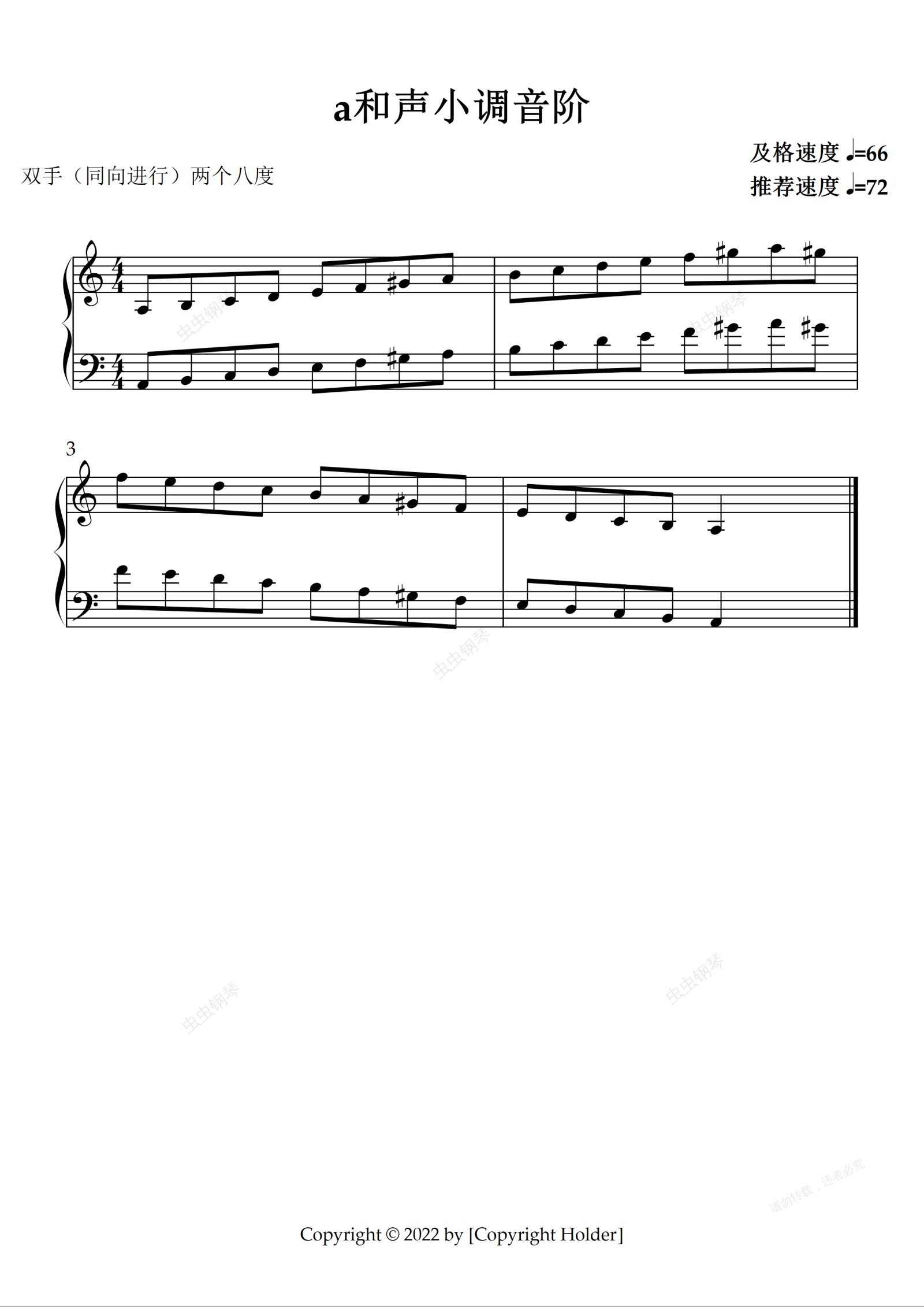 钢琴谱:a和声小调音阶 (双手 同向进行 两个八度)