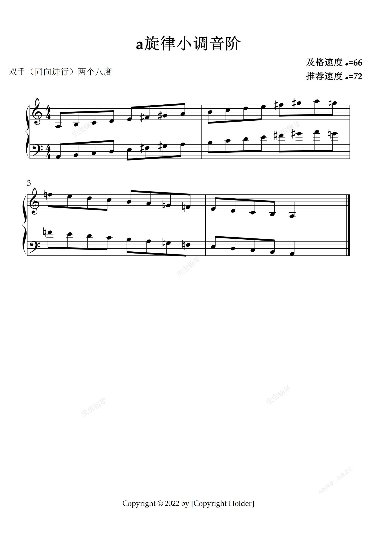 钢琴谱:a旋律小调音阶 (双手 同向进行 两个八度)