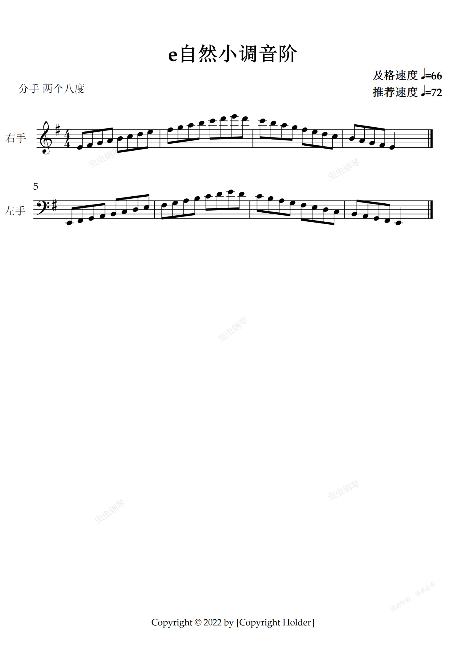 钢琴谱:e自然小调音阶 (分手 两个八度)