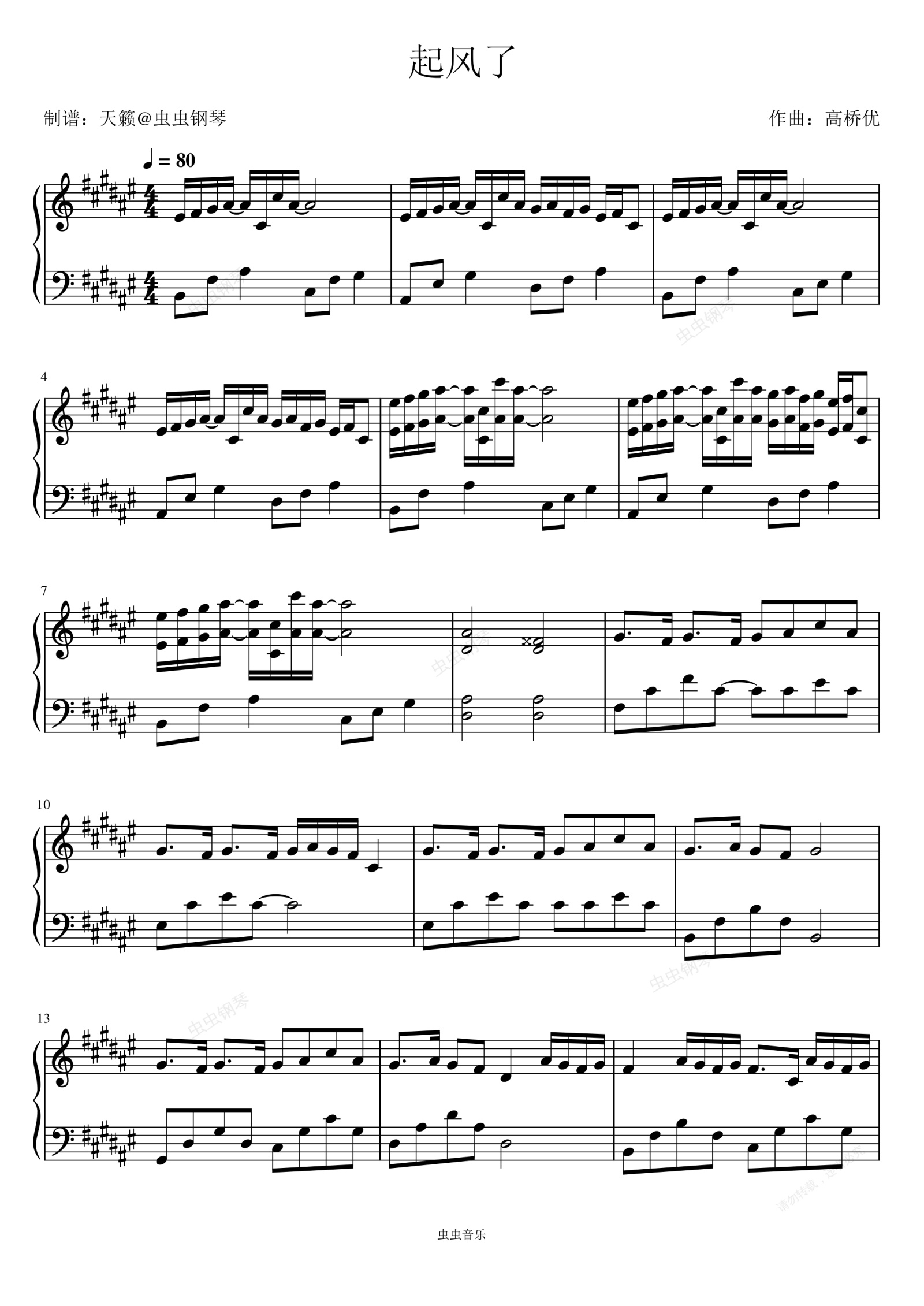 钢琴谱:起风了-高桥优 改调版