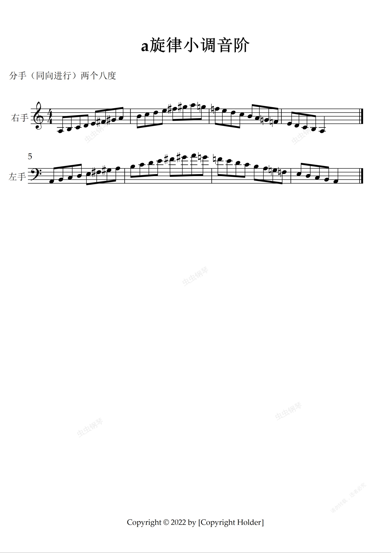 钢琴谱:a旋律小调音阶 (分手 同向进行 两个八度)