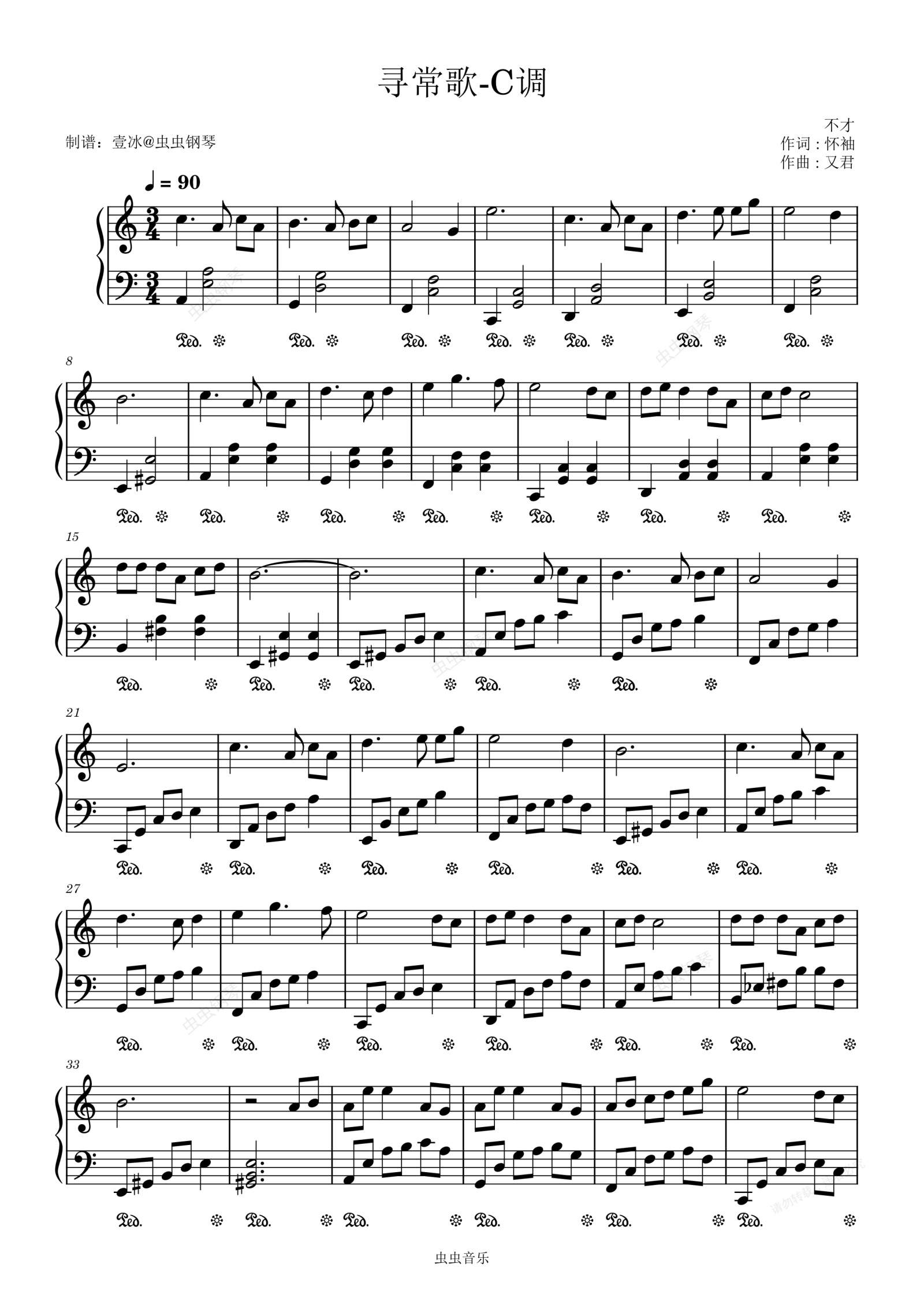 钢琴谱:寻常歌//不才-C调