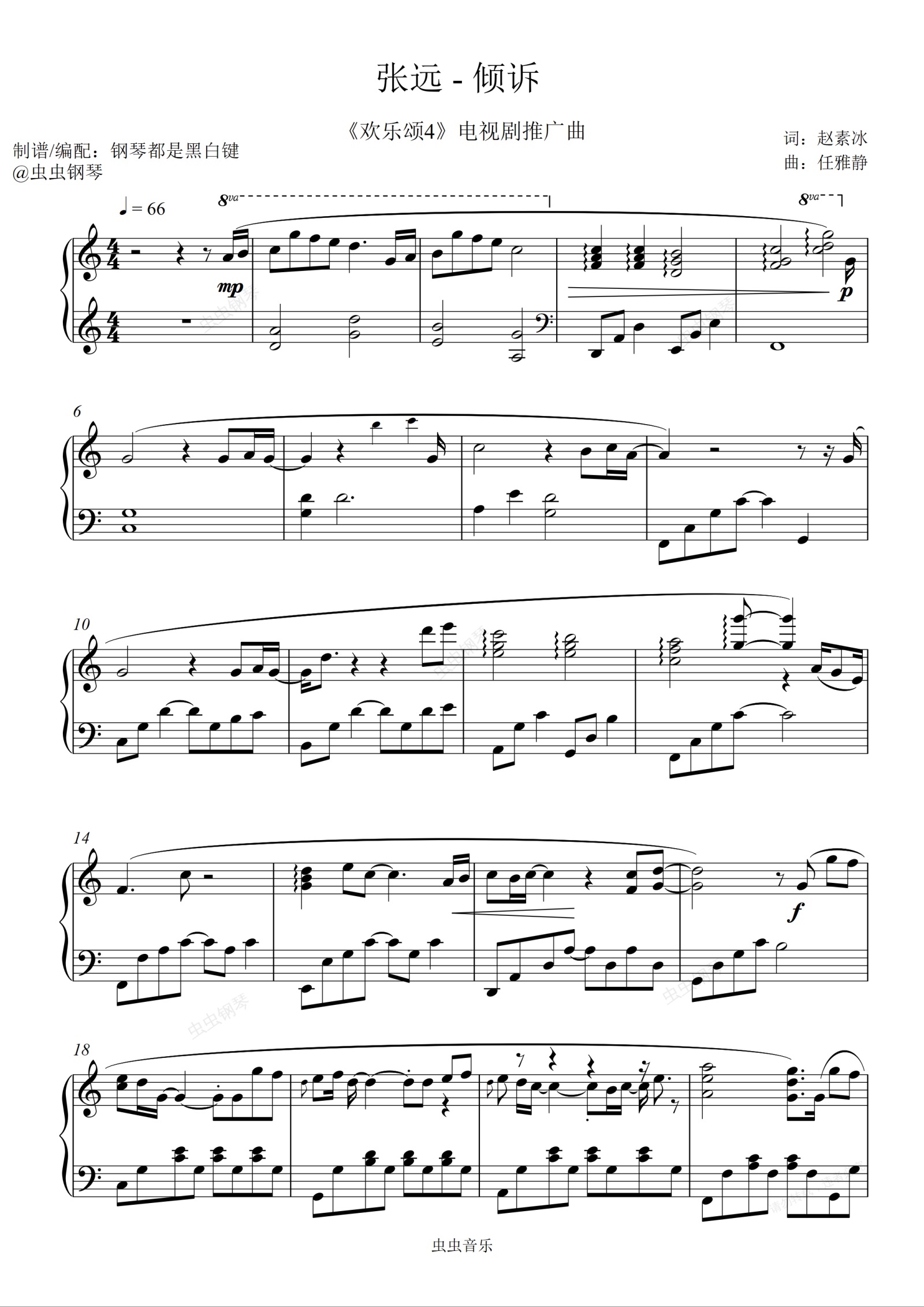 钢琴谱:倾诉- 张远 (《欢乐颂4》电视剧推广曲 C调【精编超还原歌曲独奏】